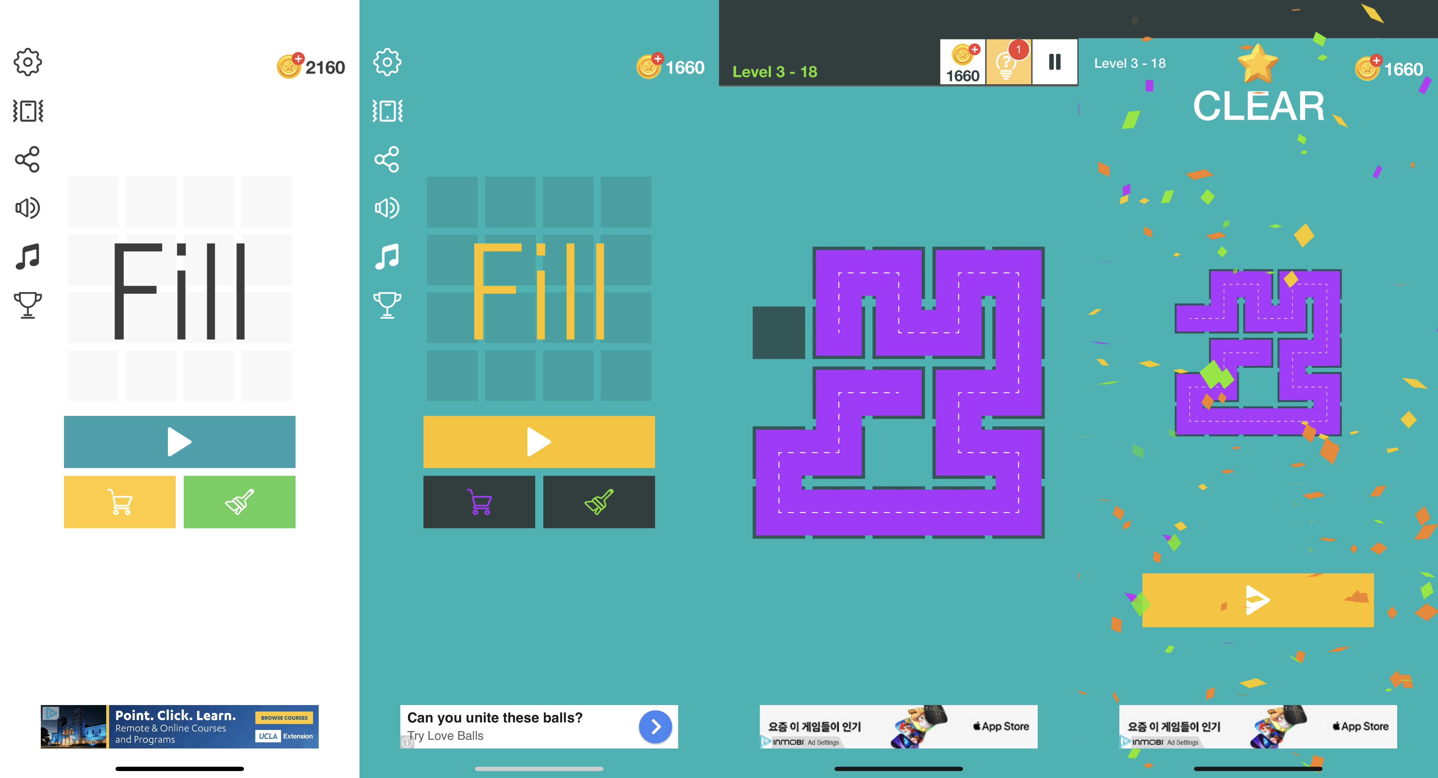 오늘의 게임은 모바일 Fill one-line puzzle game!!! 레고~~