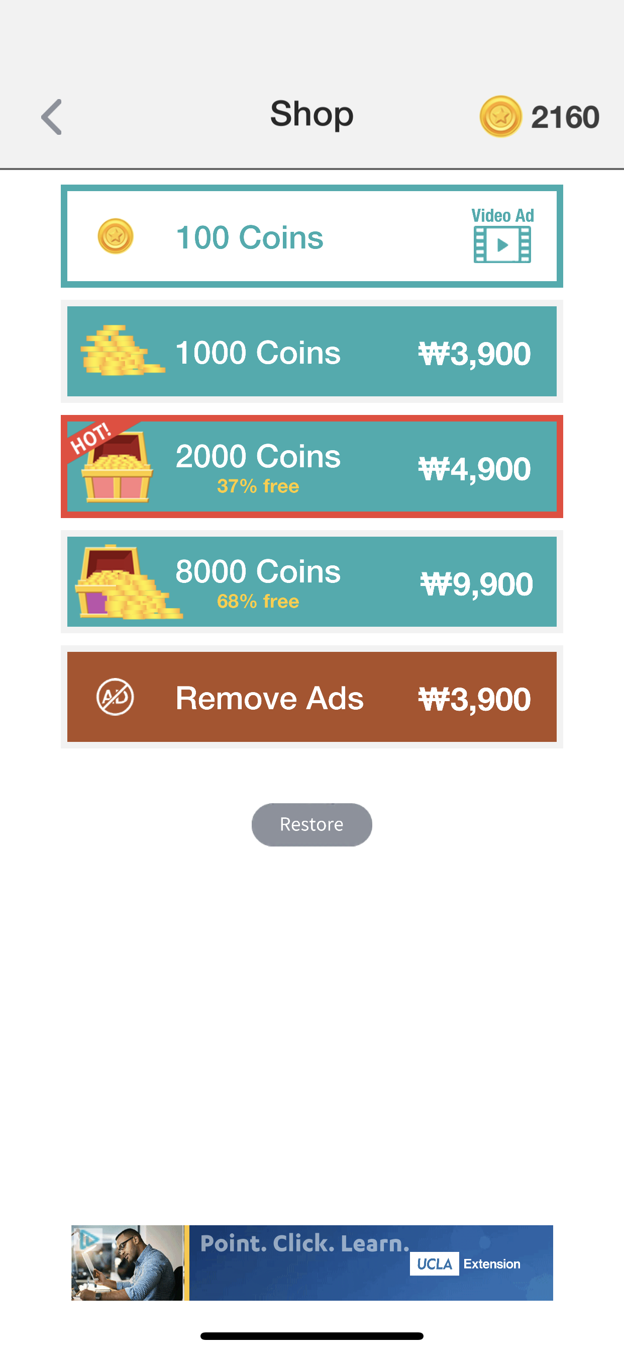 (코인은 게임 중에 힌트를 얻는 데 사용되더라고요~ 그리고 가장 중요한!!! 광고 제거!!)