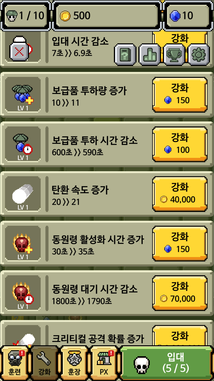 새로운 계급을 만들 때마다 계급장 훈련을 통해 탄환수를 늘려줘야 쓸만하겠죠??ㅋㅋㅋㅋㅋㅋㅋ