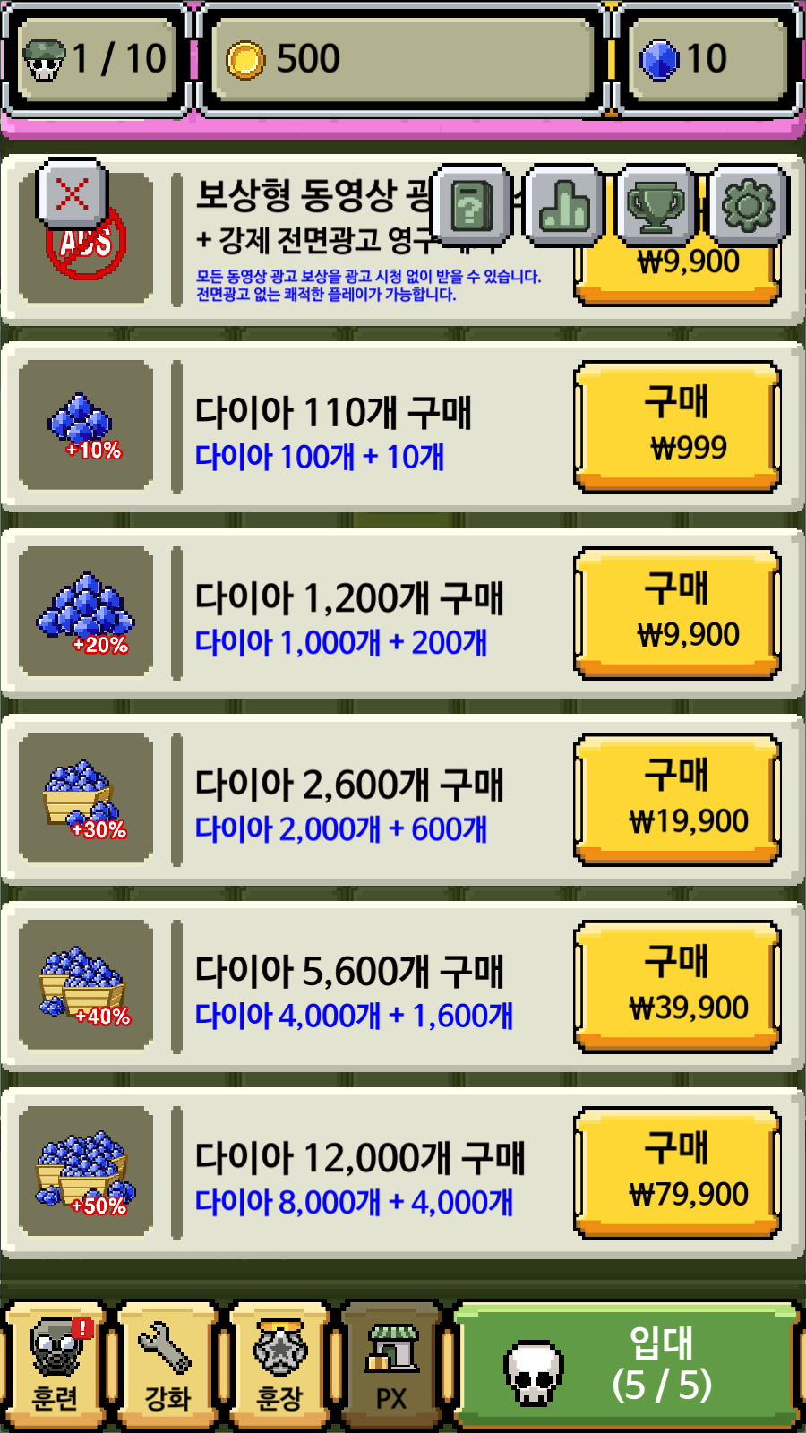 * PX : 다른 게임에서는 일종의 상점 개념인데요! 여기서는 현금으로 다이아를 구매하실 수 있습니다~